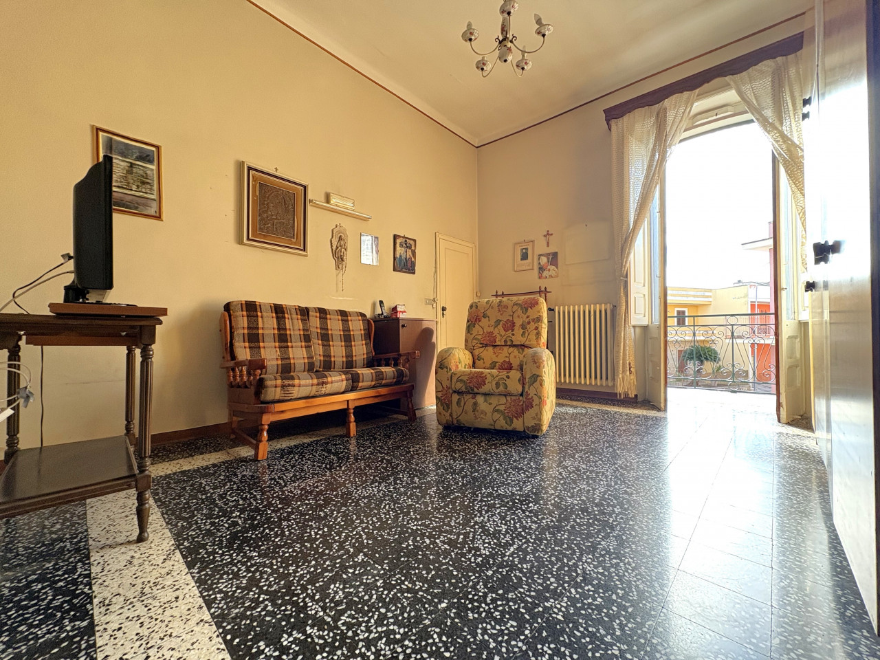 Gli spazi interni attuali si sviluppano con una distribuzione classica e funzionale: ingresso, seguito da un soggiorno ampio ed estremamente luminoso, che si affaccia su un comodo balcone abitabile.