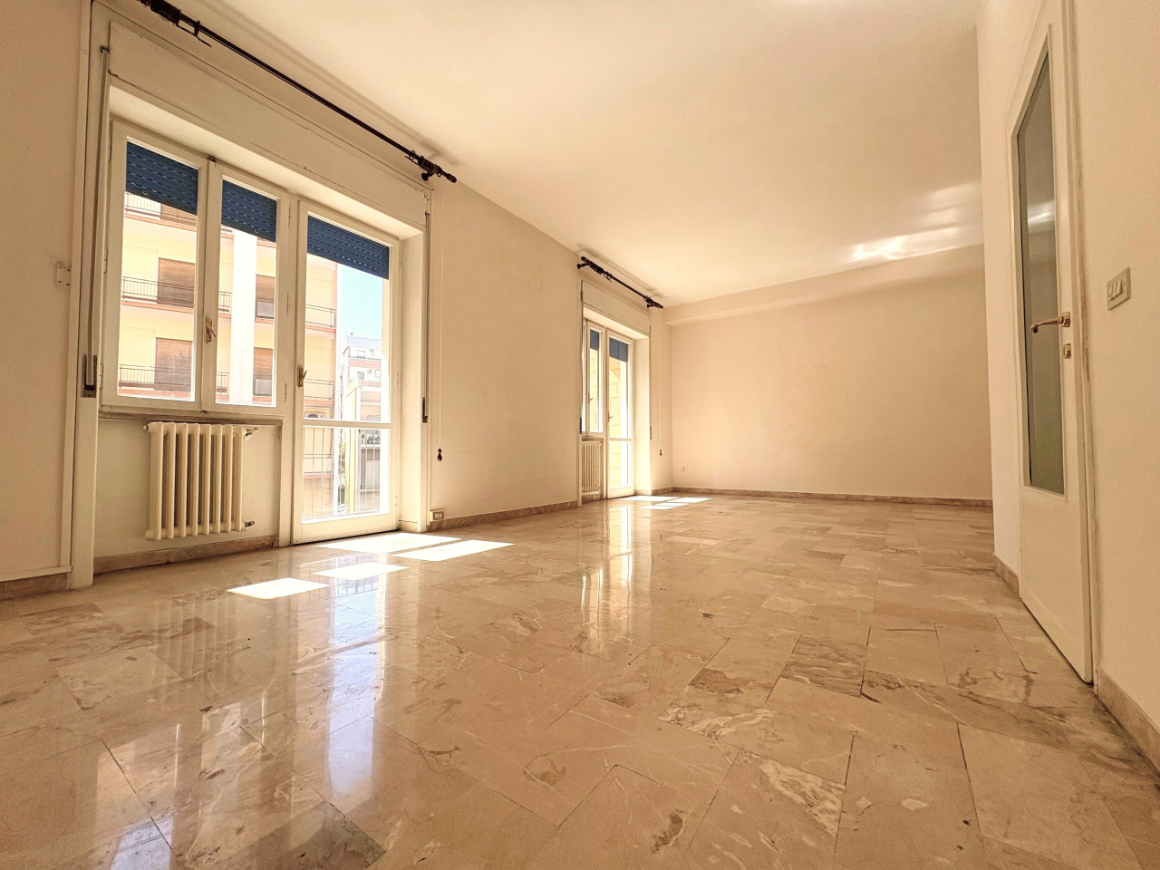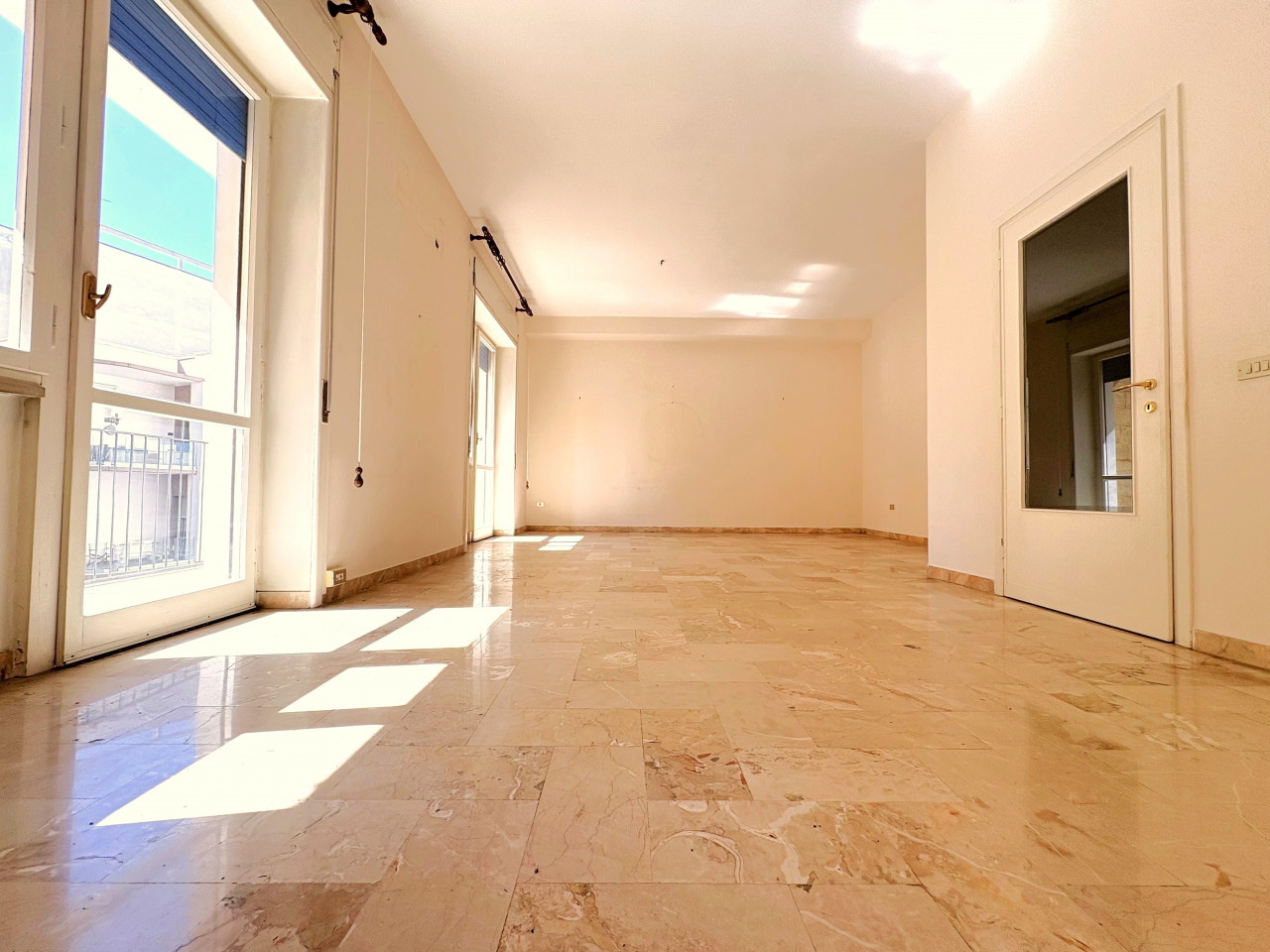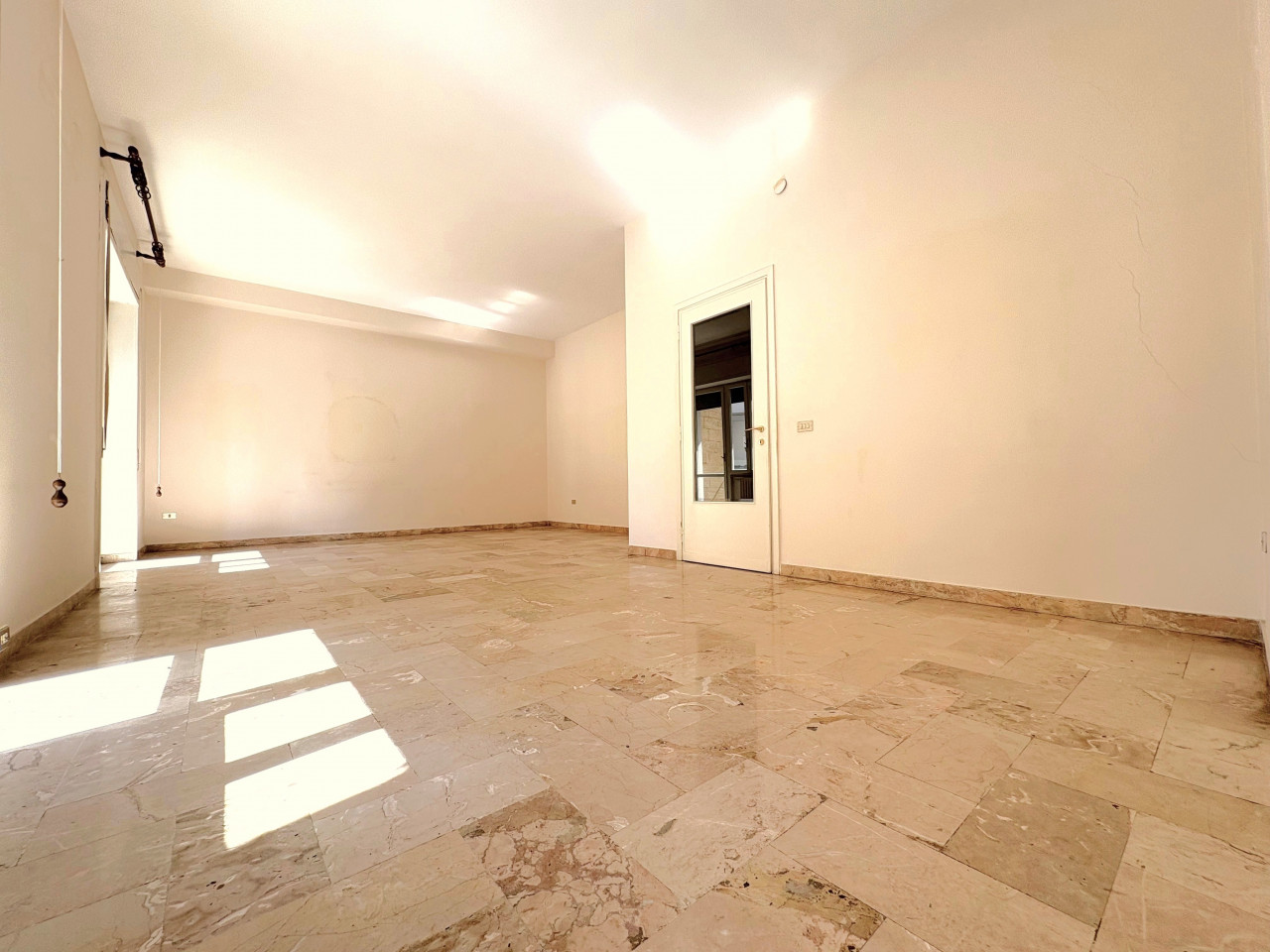 La configurazione attuale prevede un ingresso distinto, seguito dal salone di rappresentanza dalle dimensioni notevoli, tre ampie camere da letto, il tinello, il cucinotto e un bagno.