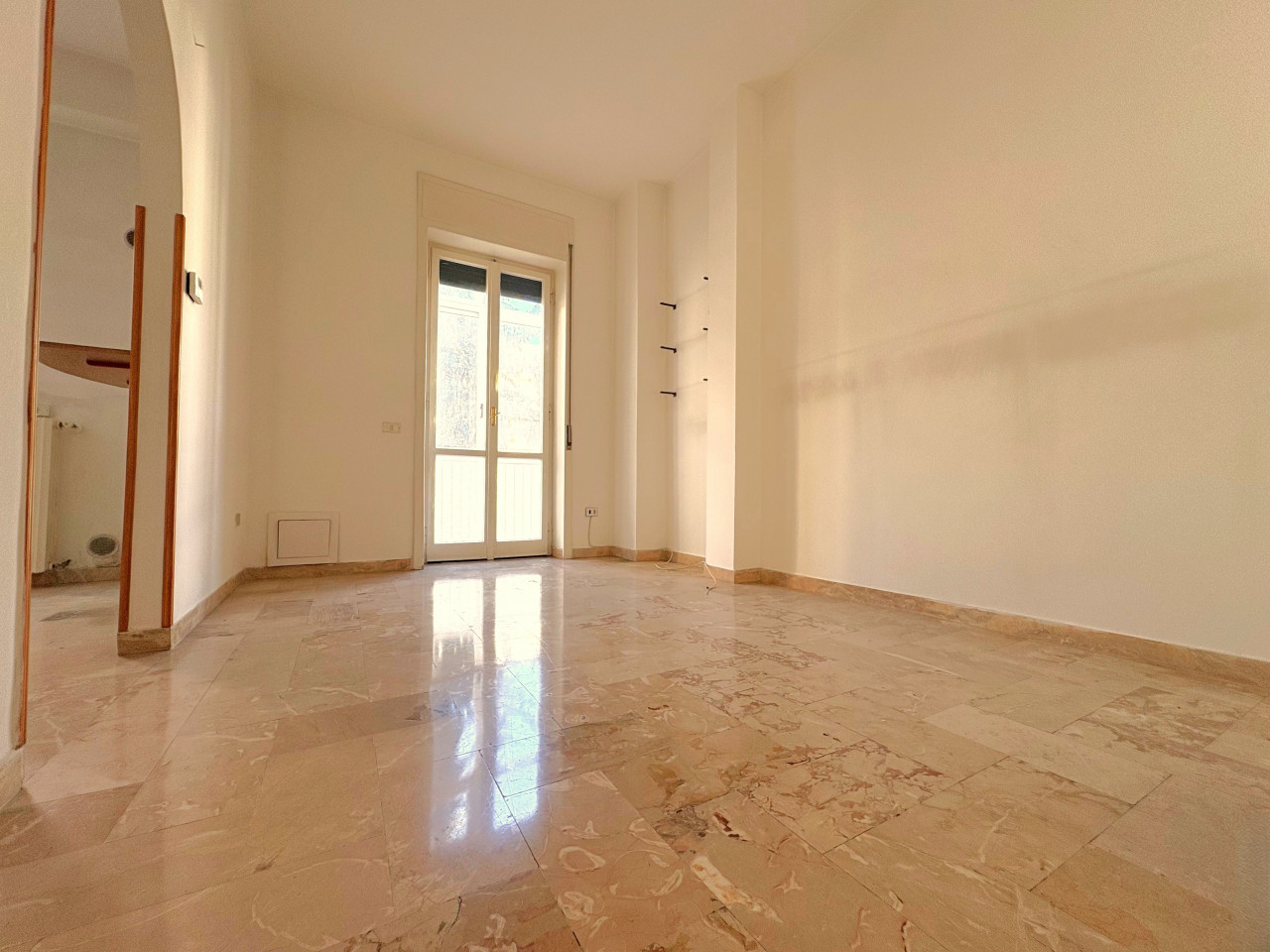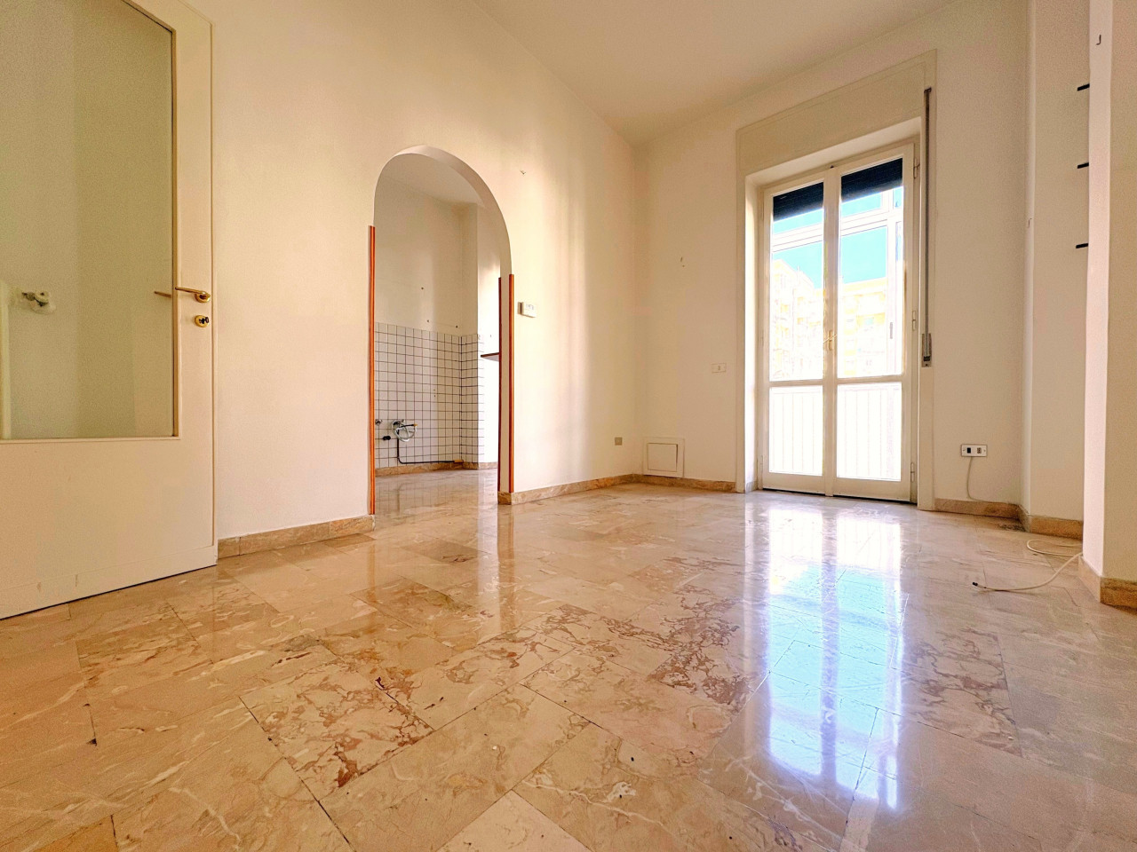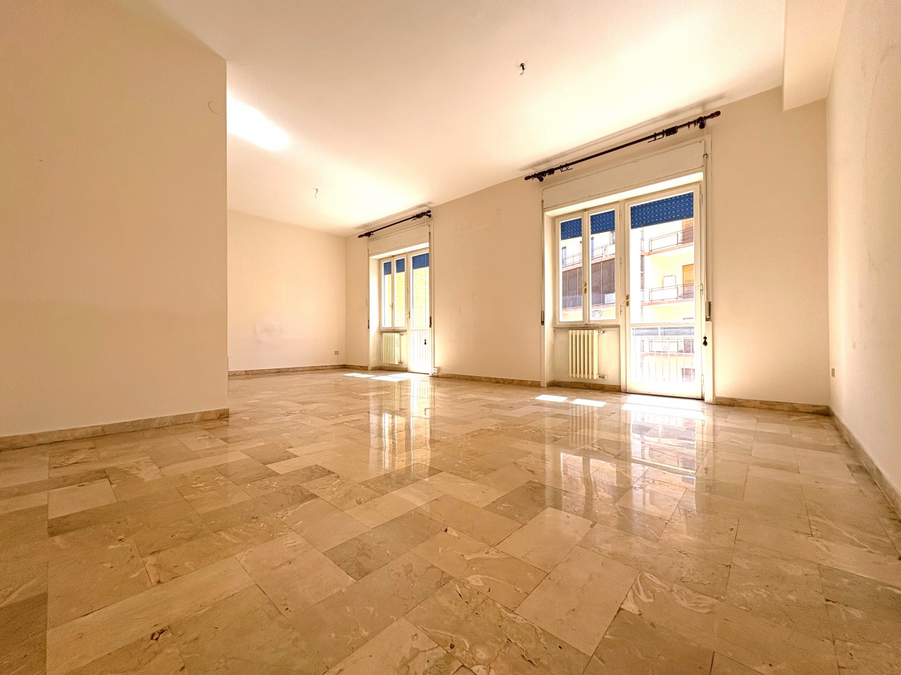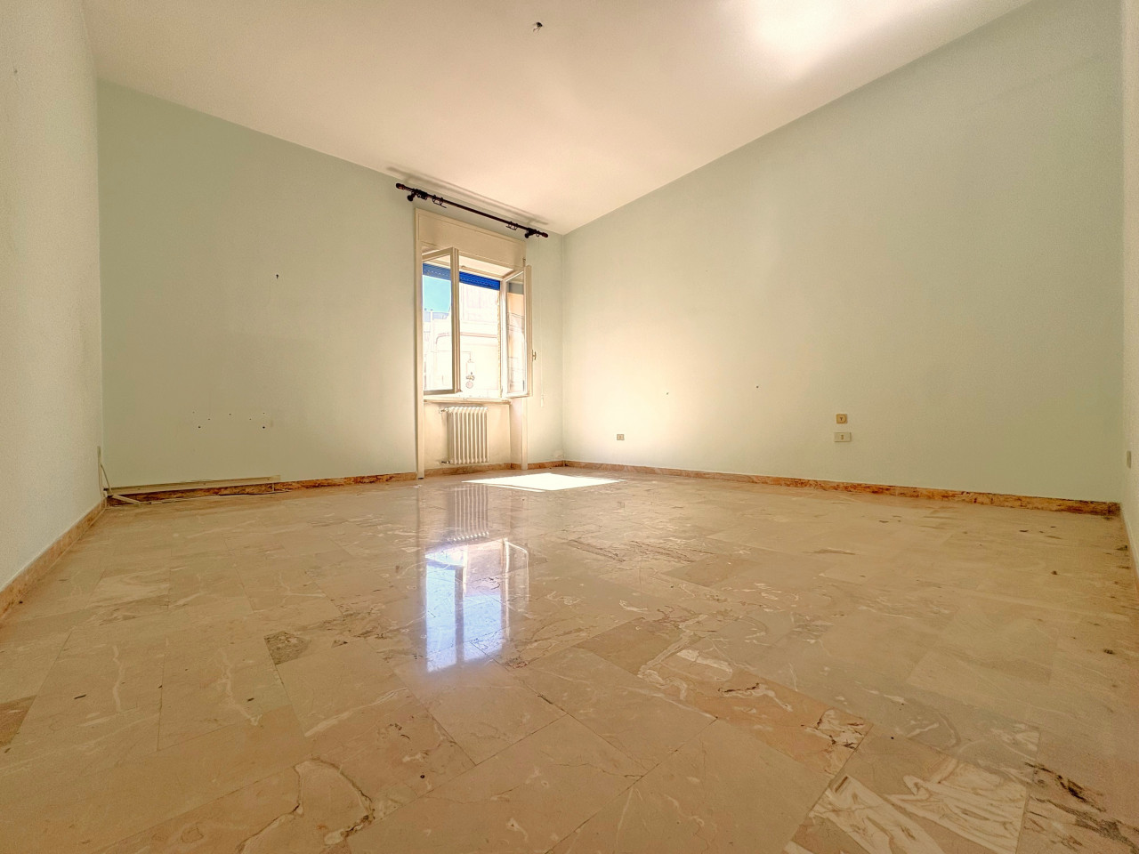 La configurazione attuale prevede un ingresso distinto, seguito dal salone di rappresentanza dalle dimensioni notevoli, tre ampie camere da letto, il tinello, il cucinotto e un bagno.