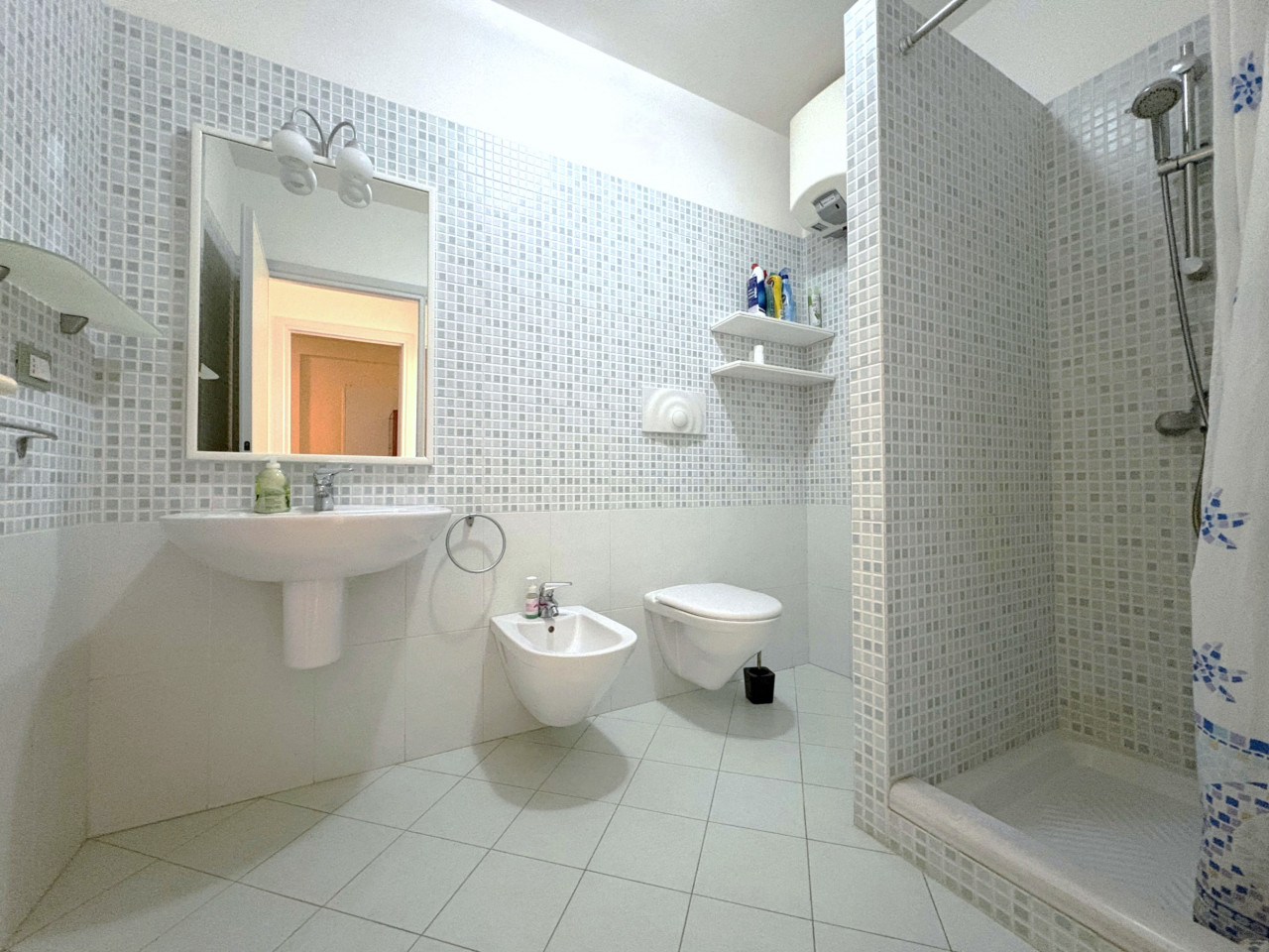 comodo ripostiglio/deposito, bagno con box doccia e due camere da letto matrimoniali, luminose e con accesso diretto all'esclusivo balcone abitabile sul retro.