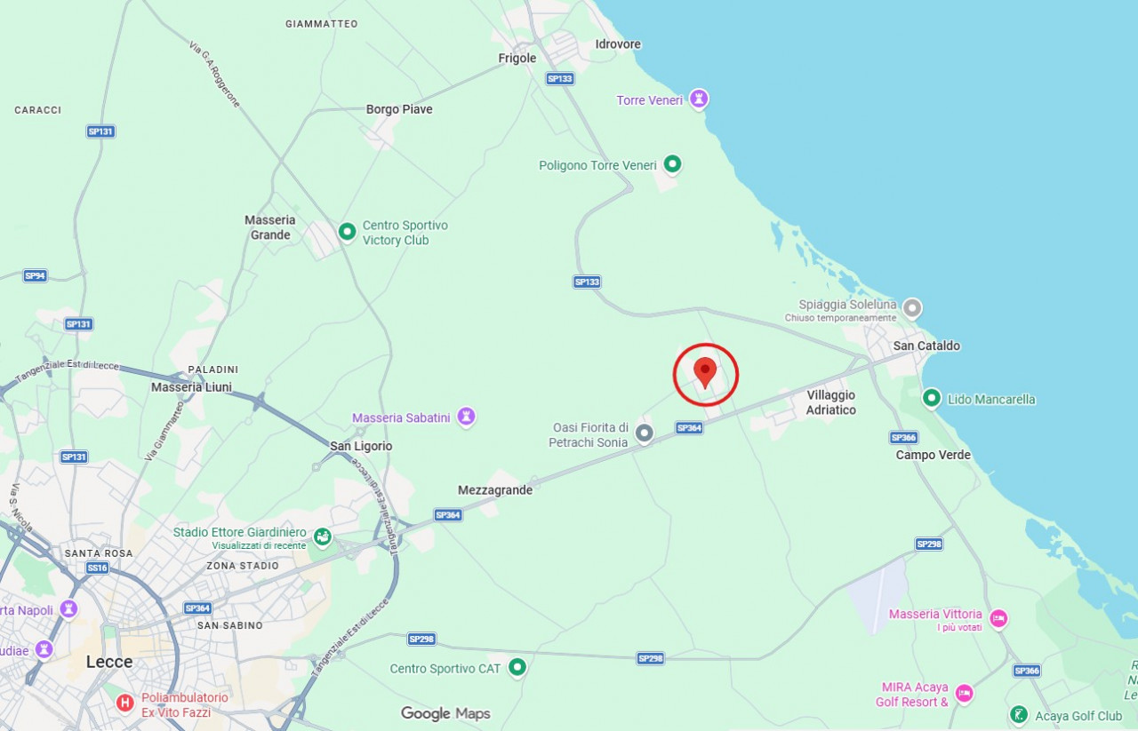 Ad una distanza di soli 6 km da Lecce, la posizione del terreno unisce la prossimità al mare senza rinunciare alla tranquillità di una via riservata e funzionale, con un perfetto equilibrio tra privacy, potenzialità edificatoria e vicinanza alla costa.